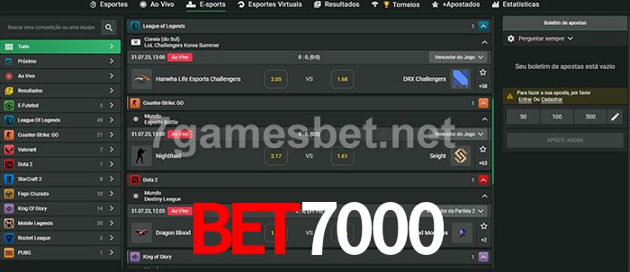 O bet7000 oferece uma grande seleção de opções de apostas em e-sports com probabilidades competitivas